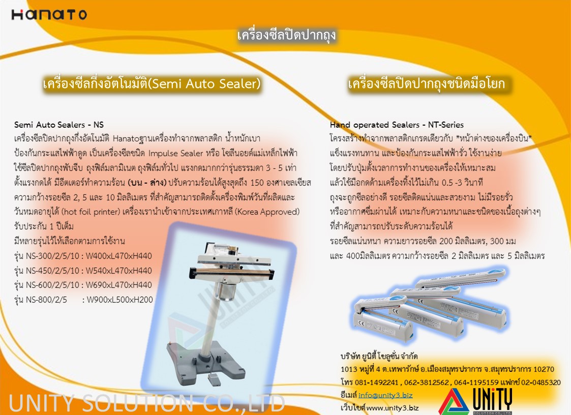 Semi Auto Sealers – NS เครื่องซีลกึ่งอัตโนมัติ · เครื่องซีลปิดปากถุงกึ่งอัตโนมัติ Hanato · เครื่องซีลชนิด Impulse Sealer หรือ โซลีนอยด์แม่เหล็กไฟฟ้า · ซีลปิดปากถุงพับจีบ ถุงฟ...