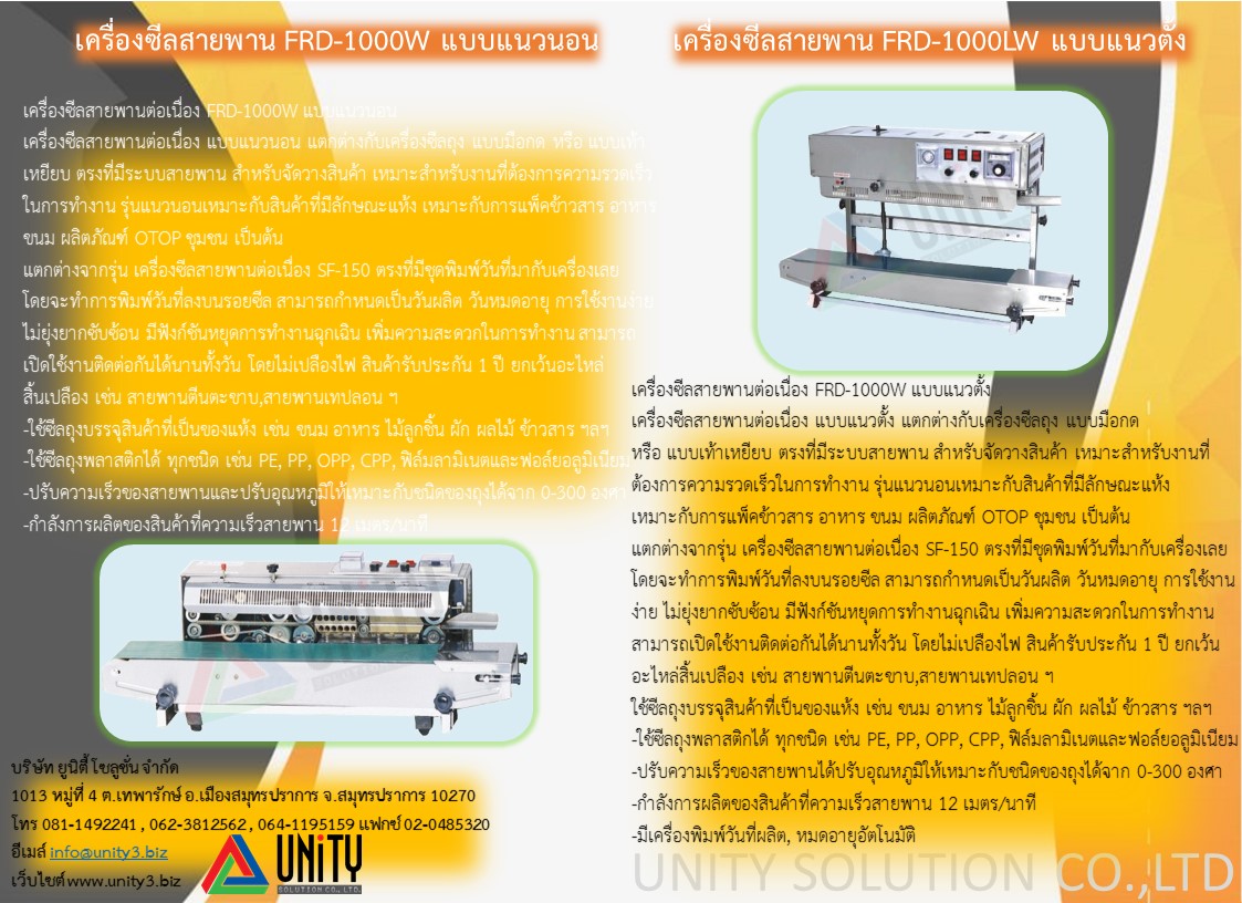เครื่องซีลสายพานต่อเนื่อง FRD-1000W แบบแนวนอน เครื่องซีลสายพานต่อเนื่อง แบบแนวนอน แตกต่างกับเครื่องซีลถุง แบบมือกด หรือ แบบเท้าเหยียบ ตรงที่มีระบบสายพาน สำหรับจัดวางสินค้า เหมาะ...