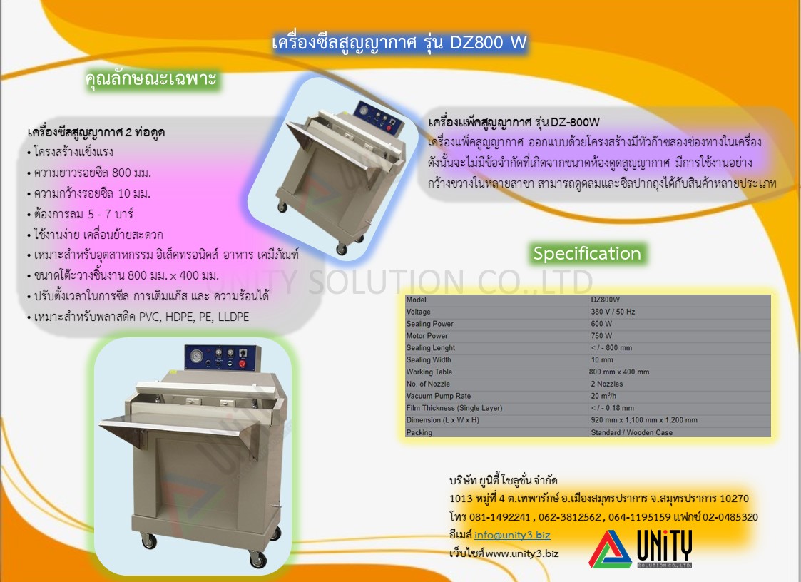 เครื่องเเพ็คสูญญากาศ รุ่น DZ-800W