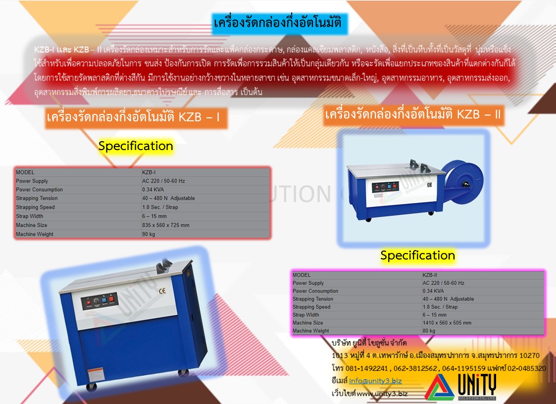เครื่องรัดกล่องกึ่งอัตโนมัติ KZB – I KZB-Iเครื่องรัดกล่องเหมาะสำหรับการรัด และแพ็คกล่องกระดาษ, กล่องแคลเซียมพลาสติก, หนังสือ, สิ่งที่เป็นหีบทั้งที่เป็นวัสดุที่ นุ่มหรือแข็ง ใช้สำหร...